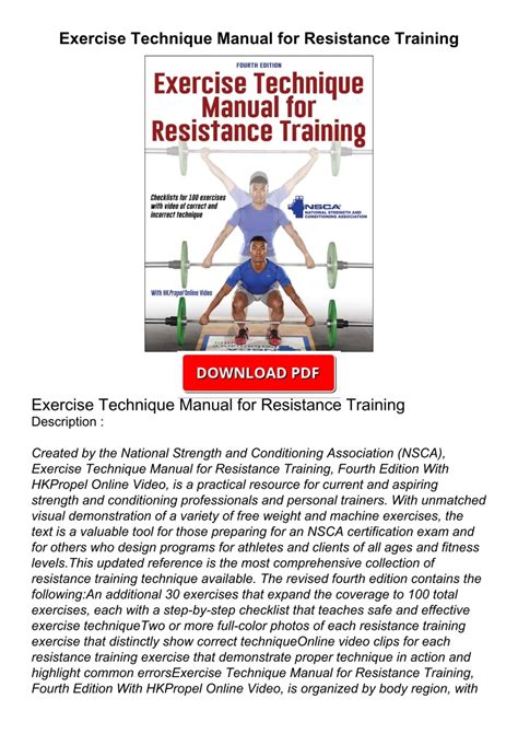 Reading Online PDF Exercise Technique Manual for Resistance Training 2nd Library Binding